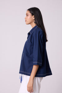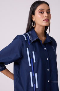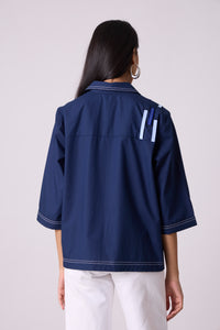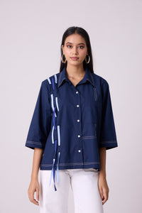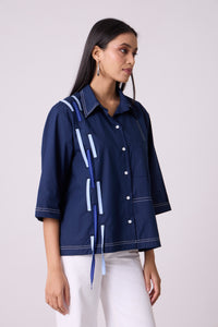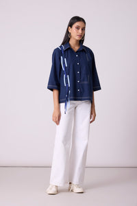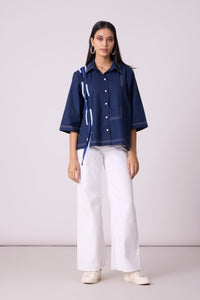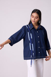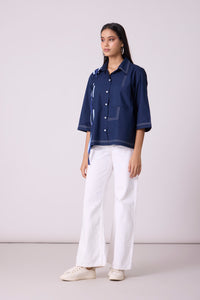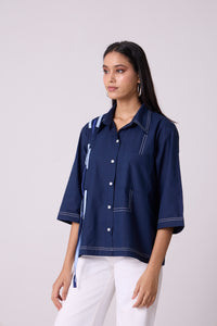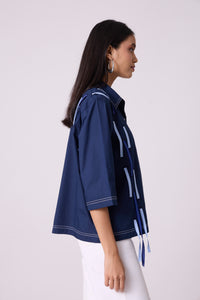 This relaxed-fit shirt with contrast fabric trims manipulated into a weave and anchor thread detailing is perfect for adding a bit of a statement to your classic shirt collection.